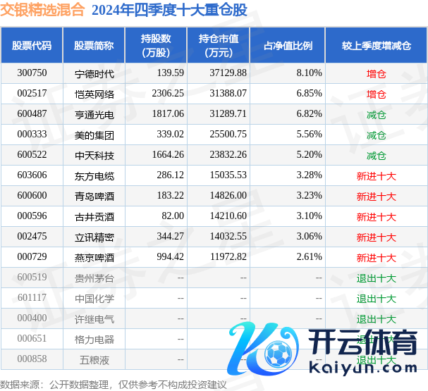 交银精选搀和为搀和型-偏股基金,字据最新一期基金季报露馅,该基金钞票建树:股票占净值比87.88%,债券占净值比5.07%,现款占净值比7.6%。基金十大重仓股如下: