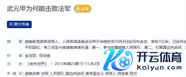 参考起原:[1]金玄哲和田剑威的盘问指出武元甲校服法军的原因在2013年第23期的《老年天下》杂志里尊龙体育网,金玄哲和田剑威两东谈主探讨了武元甲为啥能击败法军。他们防范分析了其中的缘由,试验就在10到11页之间。